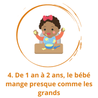 Peu à peu, l’enfant va manger presque la même chose que les adultes, en quantités adaptées à son âge.